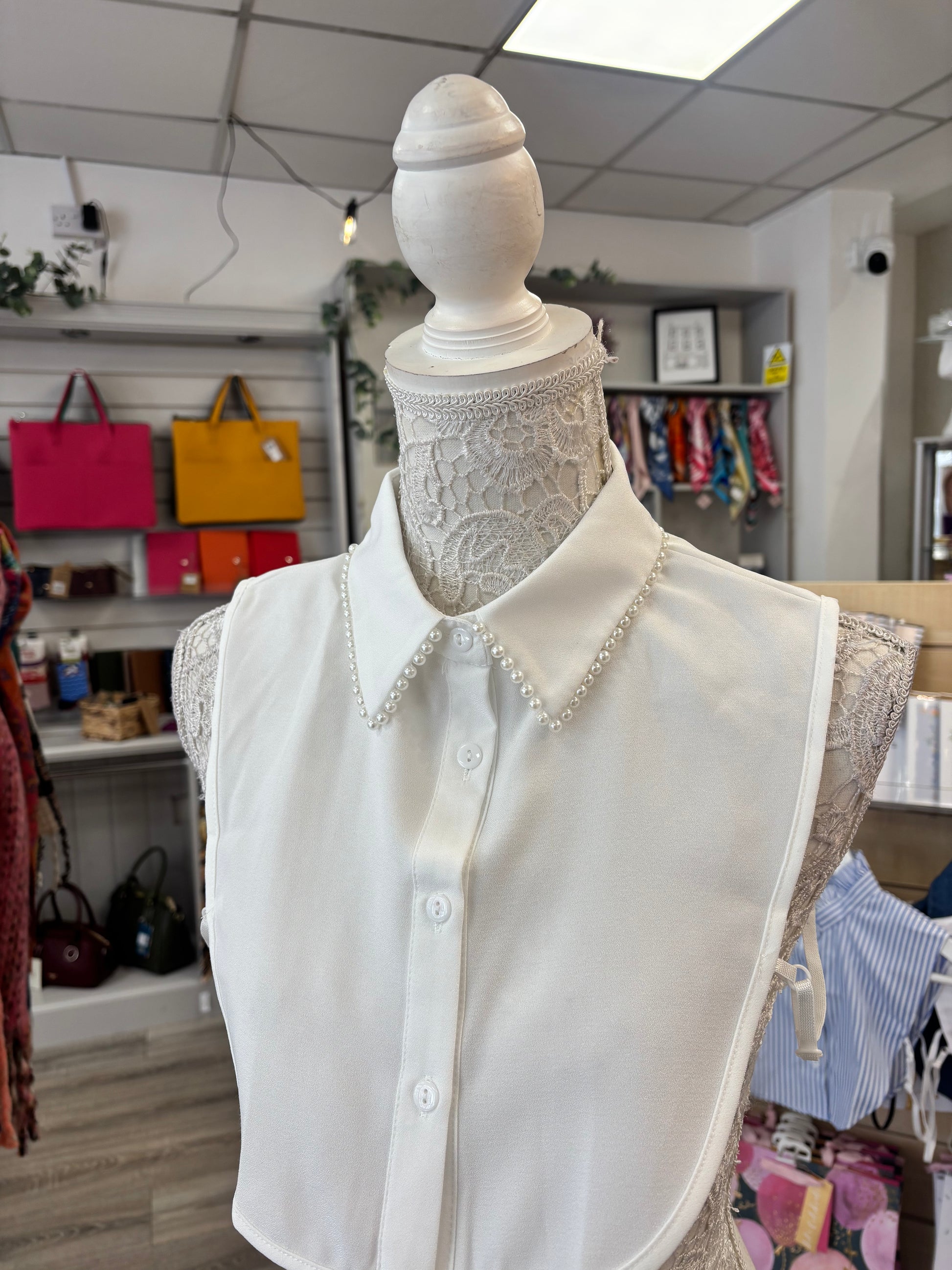 The Bonnie Pearl mock collar features a refined off-white design accentuated by elegant pearl detailing. This accessory is essential for elevating various outfits, enhancing your style with a sophisticated touch. Its versatile nature allows it to complement both casual and formal attire effectively.