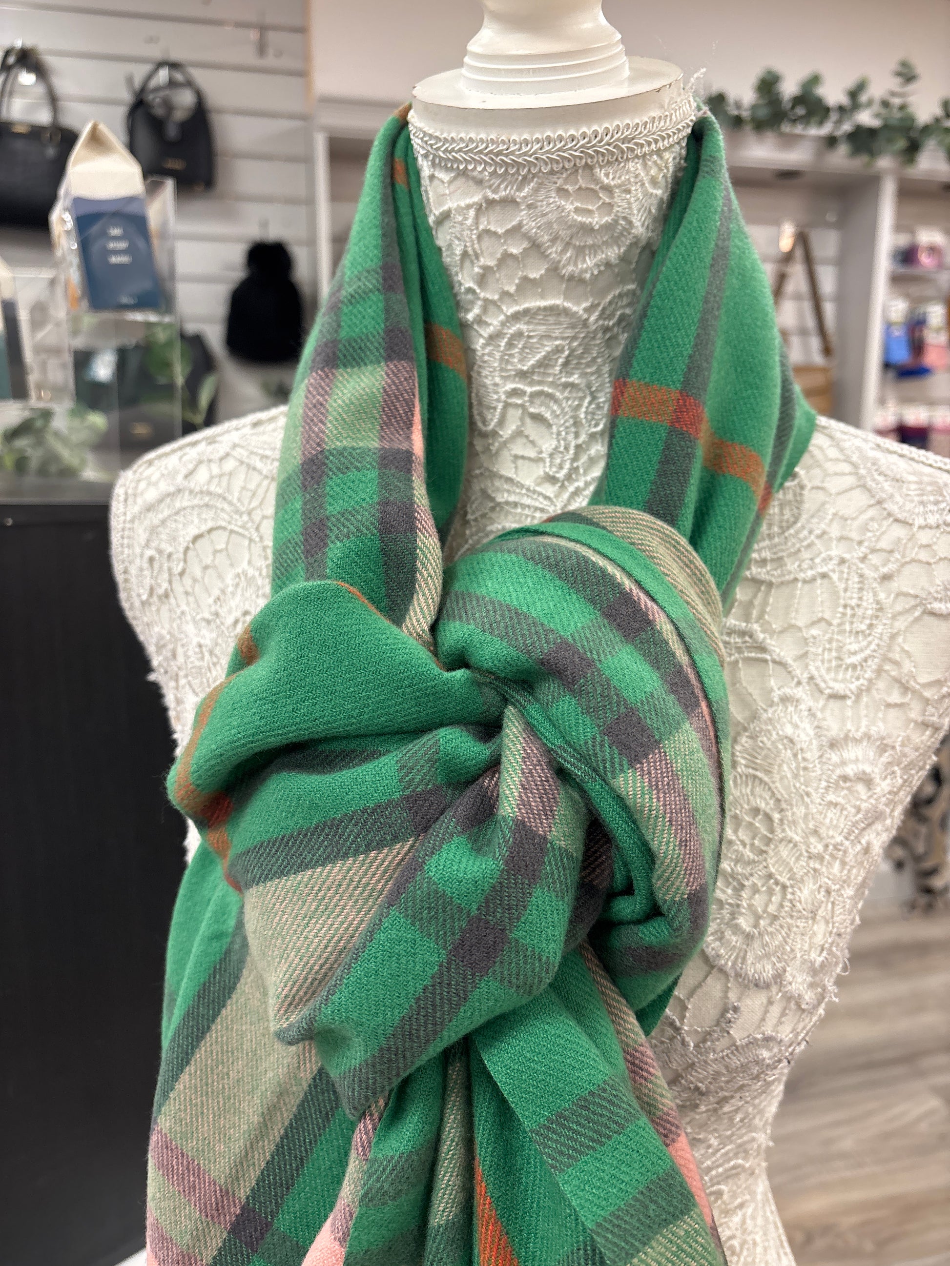 Expertly crafted with a traditional print and modern, eye-catching green color, the Jaden Green checked scarf is a stand-out accessory. Its bright hues add a pop of color to any ensemble, making it the perfect choice for those looking to make a statement.