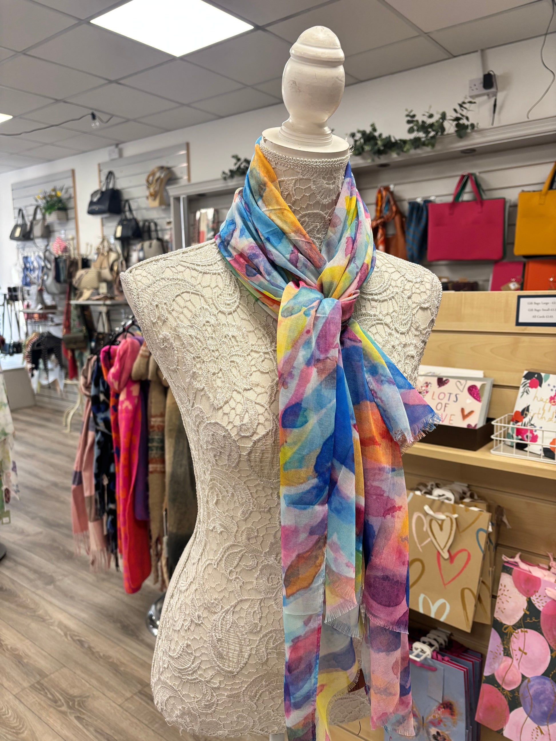 The Polly watercolour scarf features a unique watercolour colour effect that enhances its aesthetic appeal. This design not only provides visual interest but also complements various outfits, making it a versatile accessory. Its lightweight material ensures comfort and breathability, suitable for all-day wear.