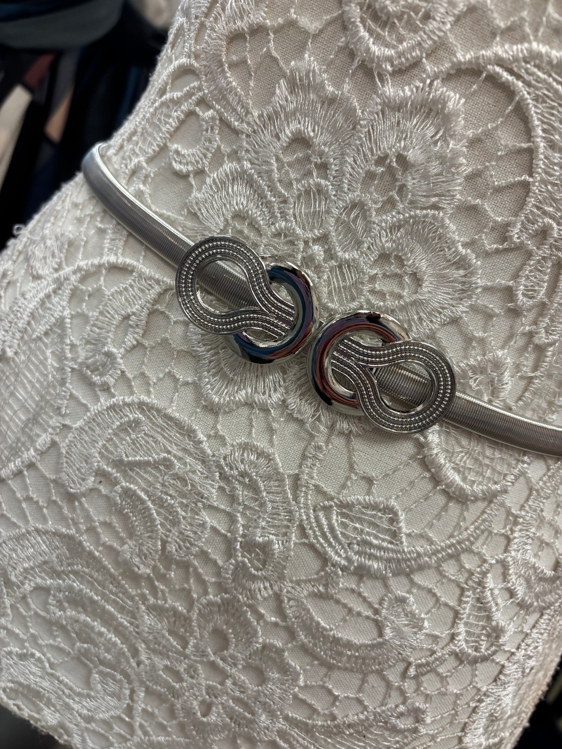 The Sheena stretch belt is designed to provide flexibility and comfort, adapting to a range of sizes. Available in gold or silver, it enhances the silhouette of dresses or longer knitwear and shirts, offering a polished look. Its stretch feature ensures a secure fit without compromising on style.