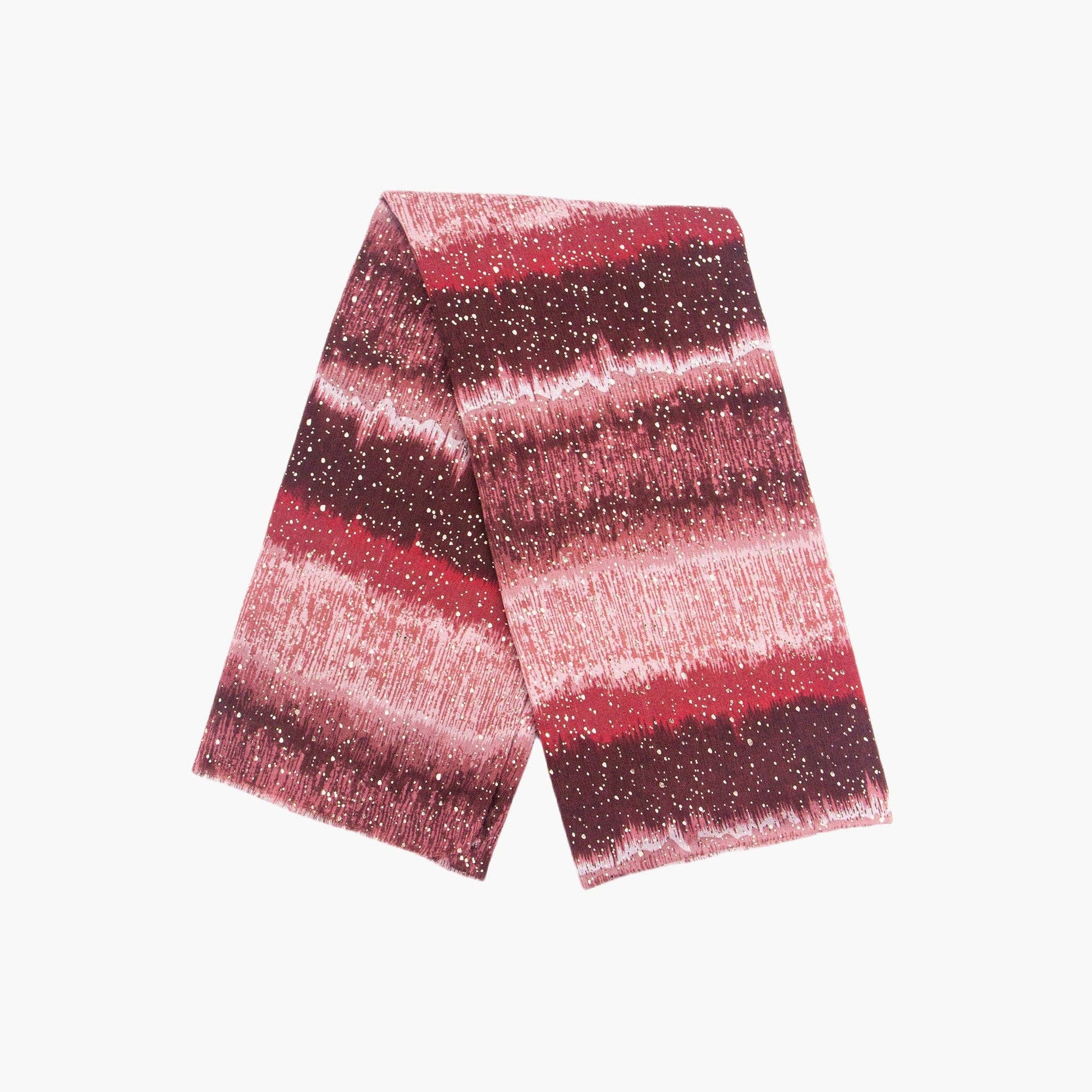 THIS PIECE This beautiful lightweight scarf features a striped ombre design with delicate foil speckles. This delightful piece is ideal for pairing with evening attire or for adding a touch of sophistication to a casual outfit. Lightweight scarf 90cm x 180cm 🧵 FABRIC Crafted from a lightweight polyester yarn, for a soft feel.Â