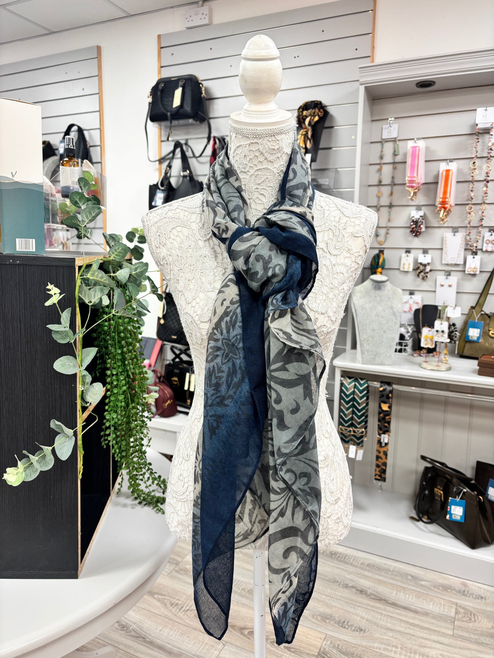 This Iris leaf print scarf is designed with a lightweight material, making it perfect for all-day wear. With four stunning color options, it's easy to find a style that fits your personality. Stay fashionable and comfortable with this must-have accessory.